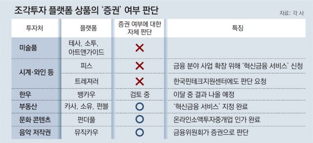 상당수 조각투자 플랫폼 “우리 상품은 증권 아니다… 계속 영업”