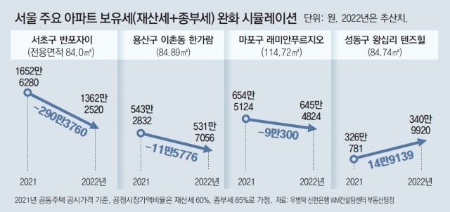 올해 보유세 작년수준 완화땐 반포자이 84m², 작년보다 290만원 줄어든다