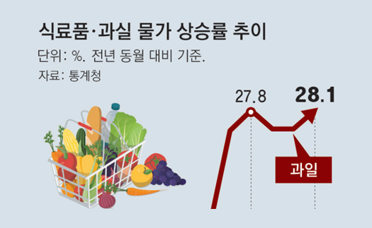 과일값 28% 껑충, 휘발유는 1600원대… 상반기도 고물가 우려