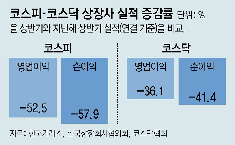 코스피 상장사, 상반기 순익 58% 급감… 코스닥도 41% 줄어