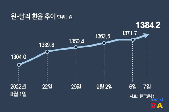 환율 1400원 초읽기… “달러예금 가입 고객 평소보다 6배 늘어”