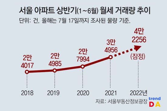 상반기 서울 아파트 월세 거래, 4만2256건 ‘최다’